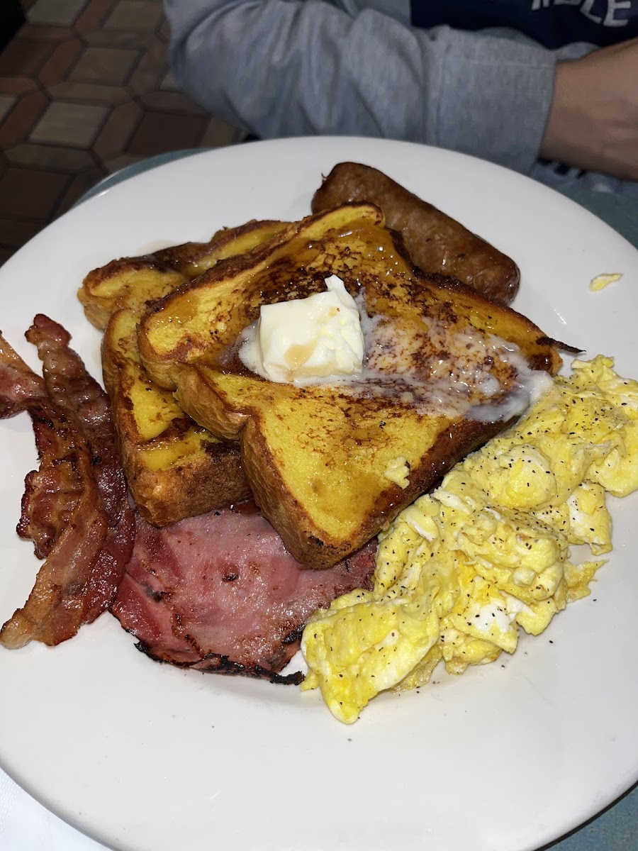 The diner also serves as a convenient meal delivery option for the neighborhood, appealing to those seeking familiar, filling dishes without leaving home. The menu’s range—from scrambled eggs with sausages and hash browns to fried seafood platters—gives diners a solid taste of classic American diner fare with occasional touches of heartier, homestyle dishes.